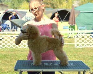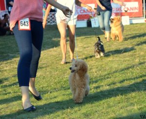 A hétvégén ismét nyakunkba vettük az országutat, és Sukorón mutattuk meg miféle világszépe ez a MissLik bébi. Nagyon meleg volt, de a kis csaj ismét egy hős volt. Sajnos az első bírálatra nagyon sokat kellett várnunk, így lehetett kicsit játszani, meg körbe szaglászni. Aztán ideje volt puccba vágni a kisasszonyt, amit minimális hisztivel és egy elsőre sikeresen prezentált copfocskával koronáztunk meg. Elsőre könnyű dolgunk volt, aranyos bíró bácsi, jól megnézte a fogait, megtapogatta a lábait és a hátát, szépeket mondott a MissLikről, megkapta a Nagyon Ígéretes 1.-et ezzel, bébi BIS-be javasolt lett. Ez annyit jelent, hogy az összes fajta bébi osztályából az 1.-k kerülnek összevetésre és azok közül kerül ki a 3 győztes. Itt rengeteg kutya haver volt, több mint 30 3-6 hónap közötti kölyök. Mivel fajtacsoportonként kellett sorrendbe állni, így mi nagyon hátra kerültünk (9-es fajtacsoport), és a bírónő sem volt túlságosan gondban a választással. Még be sem értünk a ringbe, már kiválasztotta a szűkítésbe került kutyákat. Habár rossz szájízzel de büszkén távoztunk, mert Missi kisasszony végig koncentrált és mutatta magát, nem az ő hibája, hogy a bíró néni a spánieleket szereti. A második körben már többet kellett mutatnunk, kellett körbe menni, fel-alá futni, és az asztalon is tüzetesen megnézték. Szerencsére ügyesek voltunk, így ismét Nagyon Ígéretes 1.-et kaptunk, mehettünk a BIS-be. Úgy voltam vele, ismerjük a bíró bácsit, de ő inkább magyar fajtás, lesz, ami lesz. Habár itt már kevesebben voltunk, sokan hazamentek a kánikula miatt a délutáni programról, MissLik itt is hozta a formáját. Szépen futott, nem ficergett a pózolásnál. Meg is lett az eredménye, mert bekerült a szűkítésbe, ami nagyon nagy szónak számít, főleg, hogy én mint kezdő handler, nem vagyok valami jó ebben a felvezetés témában. Végül helyezettek nem lettünk, mert úgy megijedtem a szűkítésbe bejutás után, hogy mindenem remegni kezdett, mint a kocsonya, a kisasszony meg ettől leeresztett. De sebaj, ezért kell a sok gyakorlás. Végezetül egy hatalmas játékkal zártuk a napot és egy jól elfáradt pudli királylánnyal. Legközelebb Kecskemétet vesszük be, remélhetőleg hasonlóan szép eredményekkel.